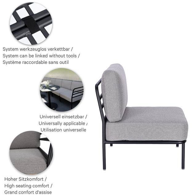 Sonica combineert Italiaans vakmanschap met slim design. Het met de hand vervaardigde kussen met hoogwaardig schuim zorgt voor maximaal comfort, terwijl het verfijnde, gepoedercoate aluminium frame voor een licht gewicht zorgt. Dankzij UV-bestendige hoezen – verkrijgbaar in Liso of het direct leverbare Sunset – blijft Sonica ook in de buitenlucht onberispelijk. Onze outdoorstof Liso, gemaakt van in de massa geverfd acryl, is kleurecht, duurzaam (20.000 toeren Martindale) en weerbestendig. Beide stoffen zijn waterafstotend (1.000 mm waterkolom) en onderhoudsvriendelijk dankzij de vlekbescherming. Slim ontwikkeld door GO IN: modulair, flexibel koppelbaar en klaar voor stijlvolle outdoor lounges.Artikelnummer
