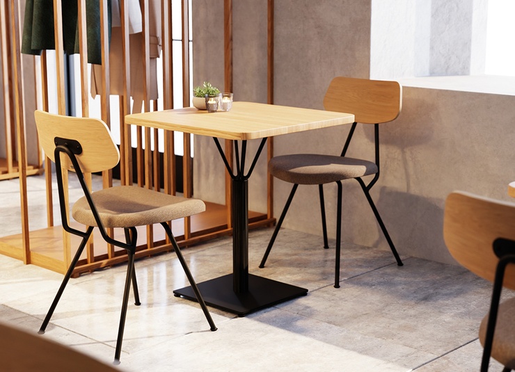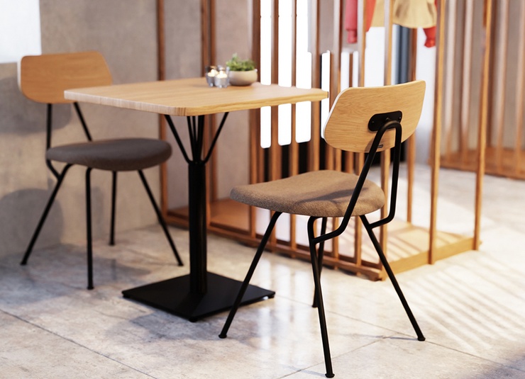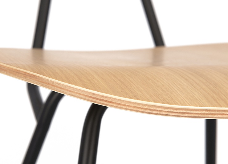 De minimalistische Ovra horecastoel in moderne industriële stijl is bewust slank vormgegeven – zo creëert u meer zitplaatsen in de horecaruimte zonder dat het benauwd aanvoelt. Het zwart gepoedercoate stalen frame is robuust, krasbestendig en bijzonder onderhoudsvriendelijk. Zitting en rugleuning zijn naar keuze uitgevoerd in echt eikenfineer, naturel of zwart gebeitst en gelakt, waardoor ze snel te reinigen zijn. Als alternatief is de stoel verkrijgbaar met een gestoffeerde zitting in een ruime keuze aan materialen en kleuren uit ons stofconcept. Ergonomisch gevormde zit- en ruggedeelten zorgen voor comfortabel zitten, ook bij langere verblijven. De fraai vormgegeven ronde buis met een vloeiende overgang tussen zitting en rug maakt het geheel compleet; kunststof glijders zijn inbegrepen.- Slank, minimalistisch ontwerp: meer zitplaatsen in de horecaruimte zonder een beklemmend effect.