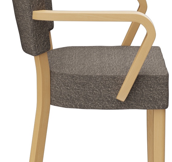Met zijn zachte vormen en de even zachte bekleding maakt het model Damara een goede indruk in het restaurant- en bargedeelte. Damara is verkrijgbaar in beukenhout in de kleuren natuur, noten en zwart, evenals in eikenhout natuur. Omdat de serie deel uitmaakt van de stoffencollectie, is deze beschikbaar in vele kleur- en bekledingsvarianten.Artikelnummer