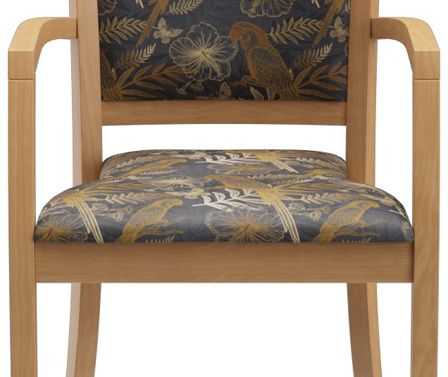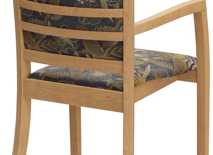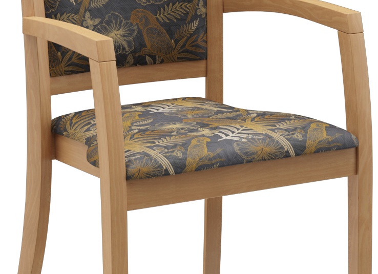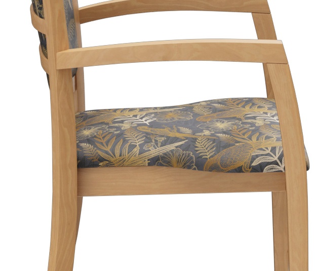 Het model Mily, met en zonder armleuningen, is tijdloos en modern. Het klassieke ontwerp met zichtbare spijlen in de rugleuning en een frame van gebeitst beukenhout in eiken- of notenkleur geeft elke ruimte een aangename sfeer. Het model is comfortabel en met zijn functionele, ergonomische vorm heeft het vele toepassingsmogelijkheden op het gebied van gezondheid.Artikelnummer