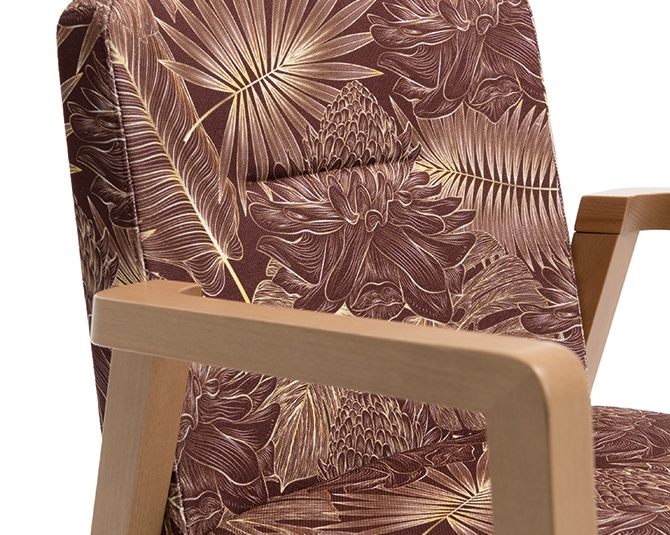 Het model Tila met armleuningen past met zijn eenvoudige en toch expressieve vorm stijlvol in elke omgeving. Het heldere en fraaie ontwerp met een frame van beukenhout, gebeitst in de kleur eiken of notenboom, creëert een aangename en harmonieuze ruimte sfeer. Het is comfortabel en heeft met zijn functionele, ergonomische vorm vele toepassingsmogelijkheden op het gebied van gezondheid.Artikelnummer
