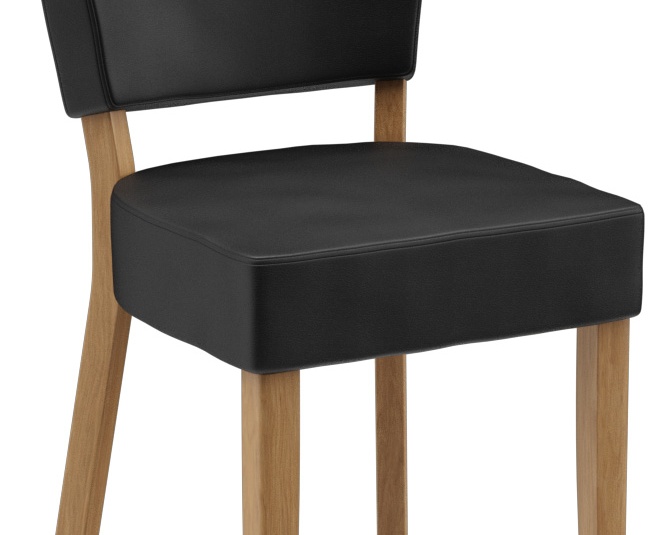 Met zijn zachte vormen en de even zachte bekleding maakt het model Damara een goede indruk in het restaurant- en bargedeelte. Damara is verkrijgbaar in beukenhout in de kleuren natuur, noten en zwart, evenals in eikenhout natuur. Omdat de serie deel uitmaakt van de stoffencollectie, is deze beschikbaar in vele kleur- en bekledingsvarianten.Artikelnummer